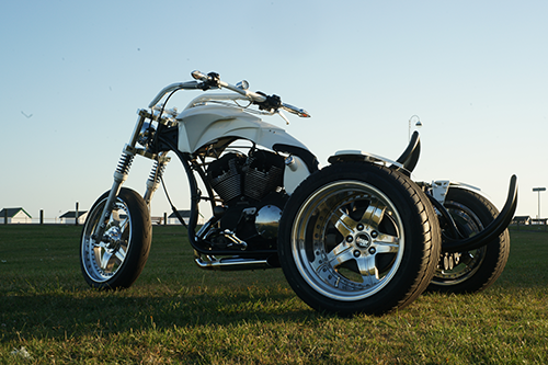 One of a kind Trike built from a Harley Davidson 1200 Sportster and a Landrover Freelander.